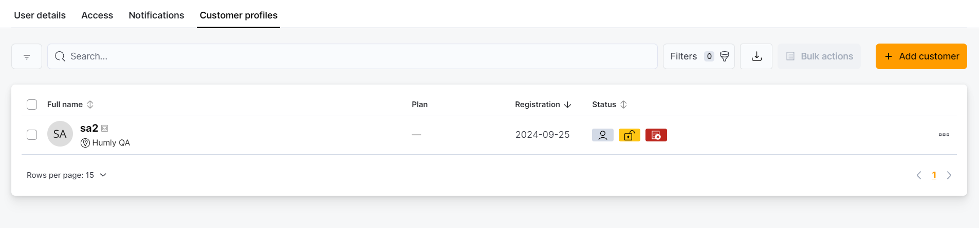 - Add a customer profile that will be reflected to the account by pressing Add customer. If you want to learn more about what a customer is then you will find more information here.