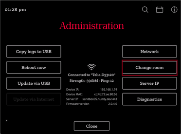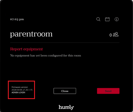 1. Click on the information icon on the top right of the Humly room display as highlighted below.