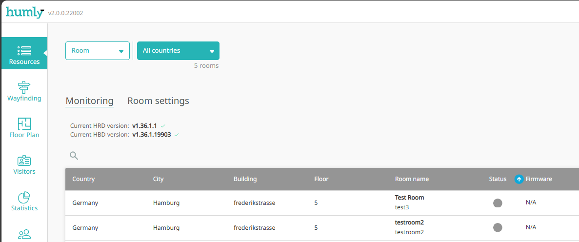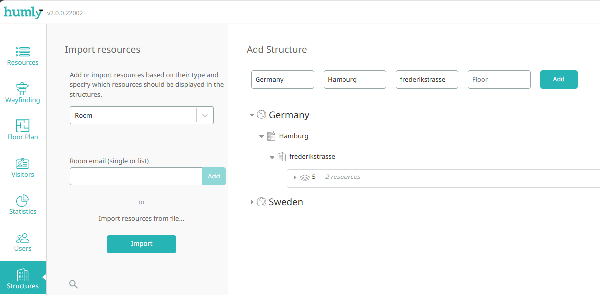 - In Humly Control Panel, all rooms and desks are assigned to a structure that follows the hierarchy Country → City → Building → Floor.