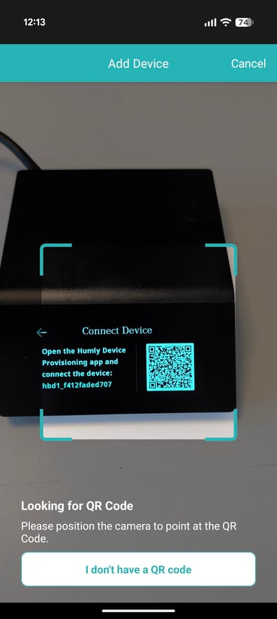 4. Enable Bluetooth on your mobile device, then scan the QR code displayed on the Humly Booking Device.