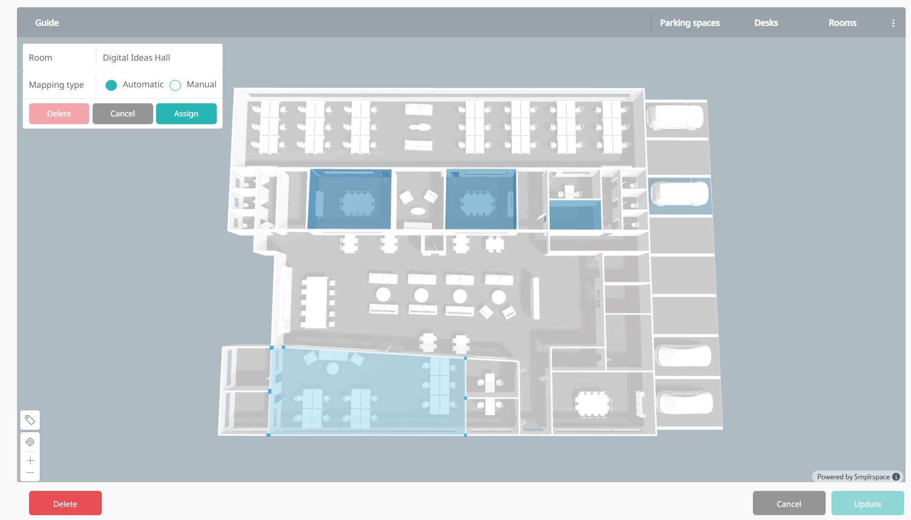 Select Manual as the mapping type if you need more precise control over the room boundaries. Click on the map to mark each corner of the room space individually, then click Assign when finished.