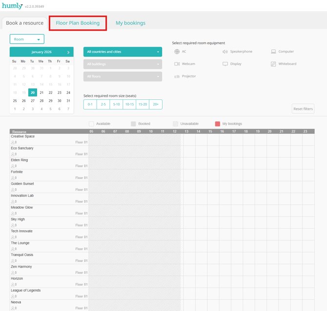 When you access Floor Plan through Humly Control Panel (Reservation) or Microsoft Teams: