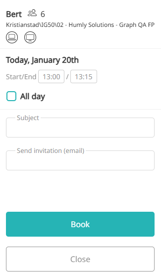 - 🔐 PIN authentication required for bookings (Interactive mode), Anonymous bookings can be configured per resource.