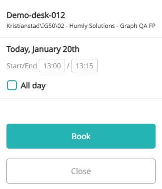 Booking a desk is similar to booking a room when it comes to selecting the date and structure, but it has a slightly different booking dialog.
