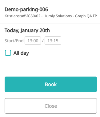 Booking a parking space is similar to room booking and desk booking and follows the same procedure.