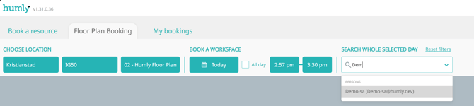 Similar to searching for a resource, you can also search for colleague and find any booking that has been made on the floor plan by your colleague.