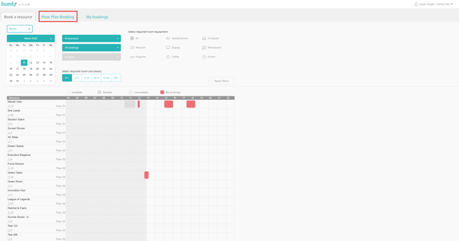When you log in to the Humly Control Panel, you have access to Humly Floor Plan