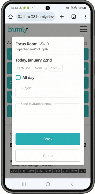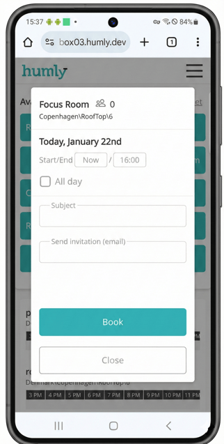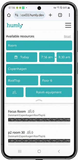 https://xxxxx.humly.cloud/reservations?resource=room123@company.com&resourceType=room&open=true