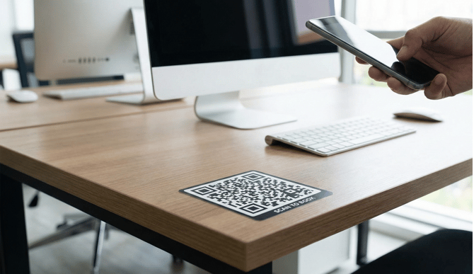 Desks: Apply a QR code sticker directly to the desk surface. This allows employees to claim a free spot immediately upon arrival.