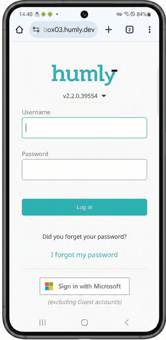- If you are not already logged in, you will be prompted to log in to the Humly Control Panel