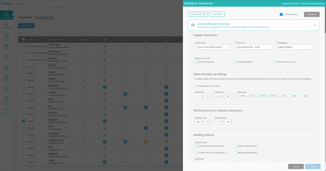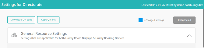 - Navigate to the resource settings in Humly Control Panel