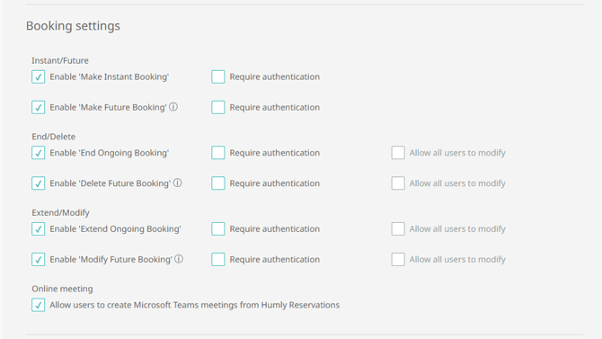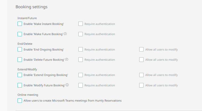 - Tell the admin user to enable all the required resource settings to allow you to create, edit or delete a booking.