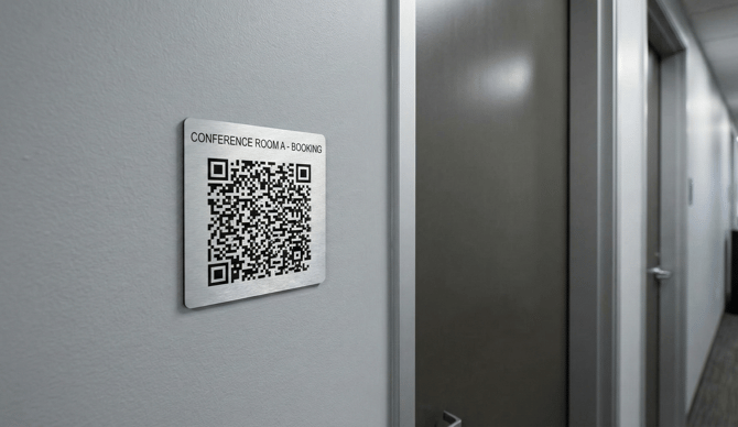 Meeting Rooms: Mount a QR code label on the wall or glass next to the room entrance. This enables ad-hoc booking for impromptu meetings without needing to open a laptop.