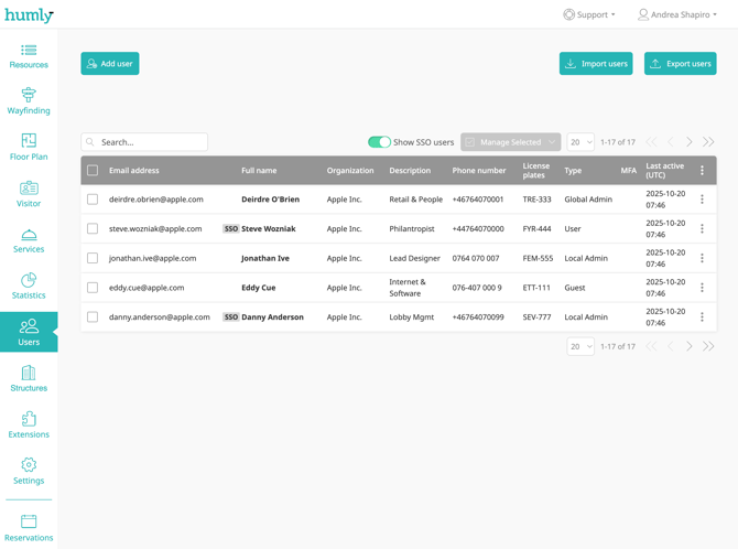Managing Users in Humly Control Panel