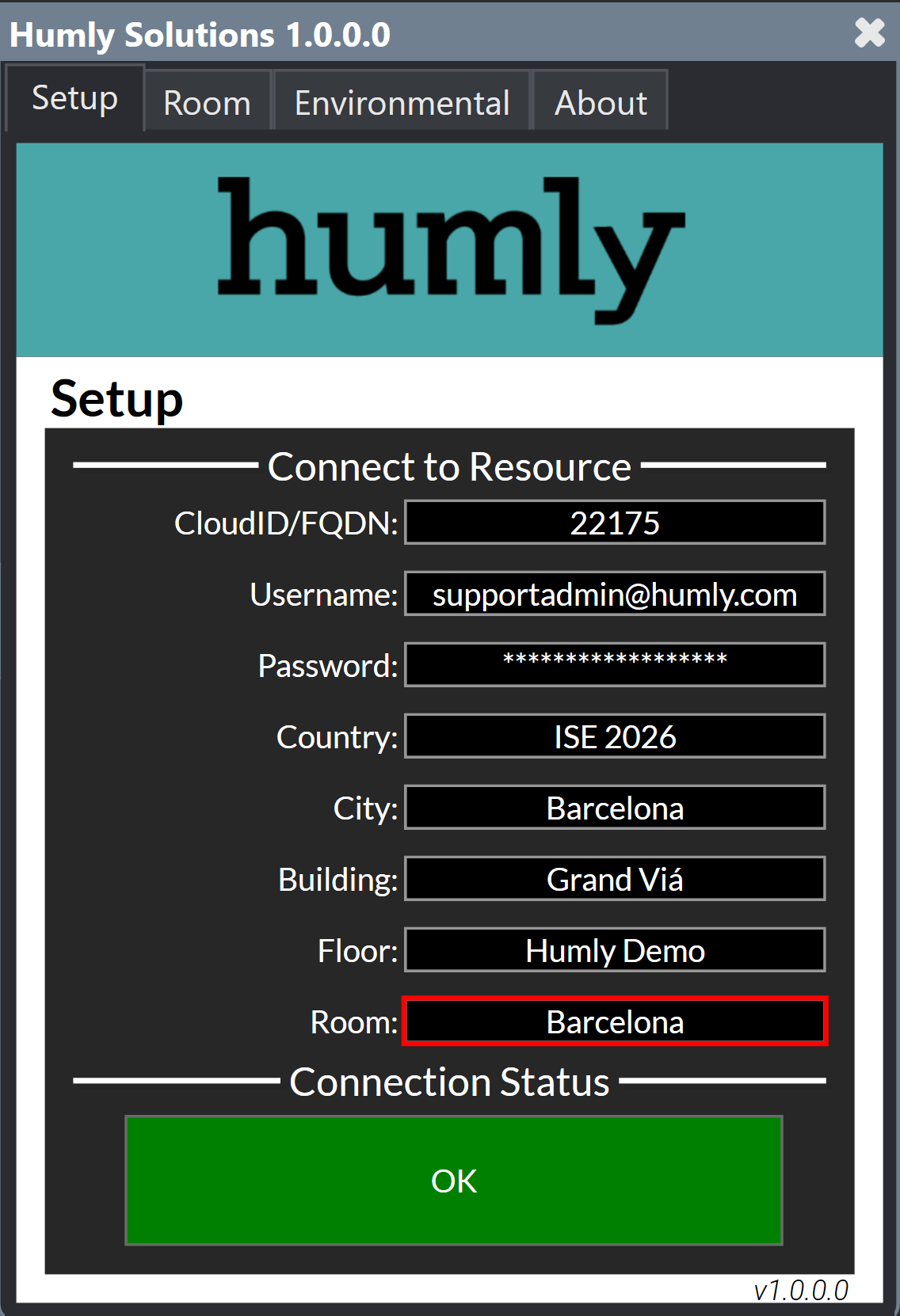 Once the previous three values are entered correctly, you should see the connection status change to green and OK.